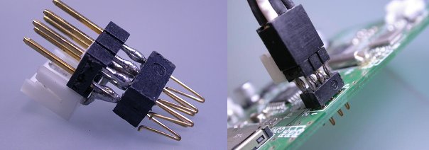 You might have a question, "What does the left unmounted mean?". It means that using the plated through-holes as a socket. Some type of through-hole plugs for this purpose called Conthrough is available from MAC8. It can be used to attach the programming cable to the circuit board without a pin header on the board. Right image shows the built attachment for standard AVR-ISP socket. Of cource the advantage is that can eliminate the connector that used only one-time at production.