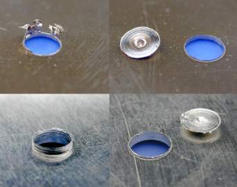 最後に銅板(t0.3mm)とアルミ板(t1.0mm)に開けた穴を裏側から見た写真を示しておきます。一文字ドリルで開けた穴(右側)はきれいに仕上がっているのが分かります。
