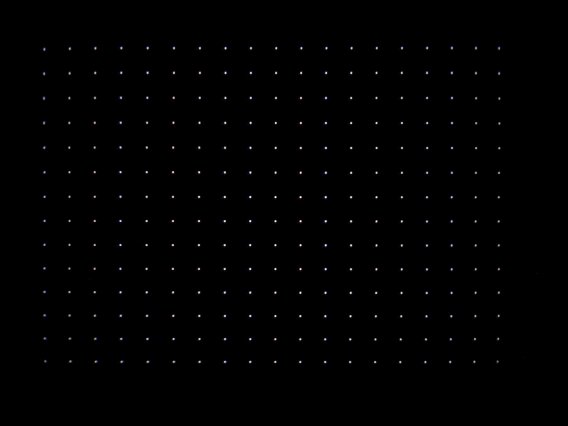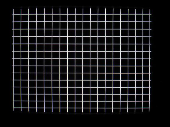 ドットやラインでモニタに目盛りを表示し、歪みやコンバーゼンスの調整をする。コンバーゼンス調整するときは、眼鏡を外さないと正しく調整できないので注意。