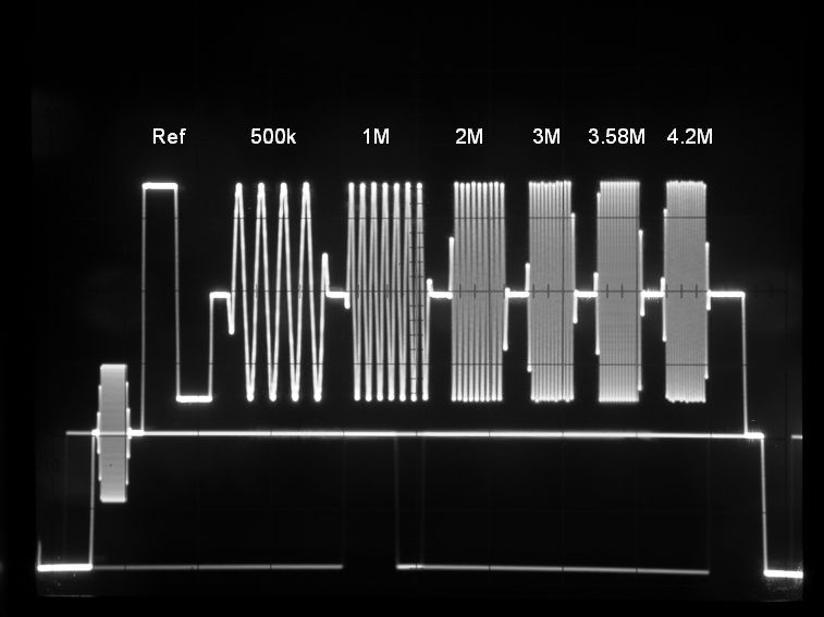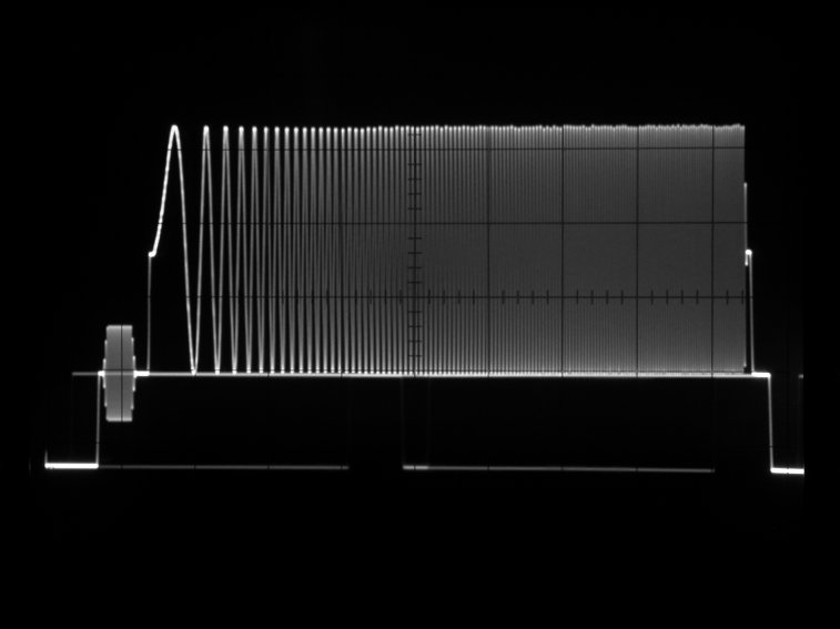 周波数特性を調べるためのテスト信号。写真のスイープは、水平スイープ。1フィールド単位で変化する垂直スイープもある。