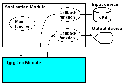 First of all, you should build and run the sample program shown below. This is a typical usage of TJpgDec module and it will help to narrow down the problems on port and debug.