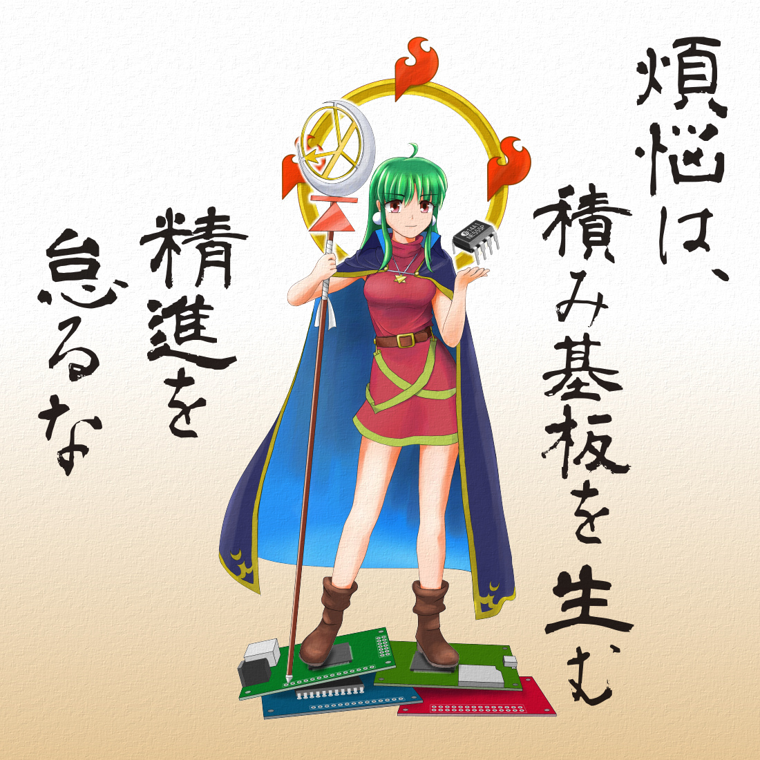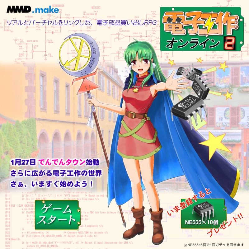 The one uploaded at Niconico Video. Painted for invitation to the electronics handiwork circles. The logotypes used in this image are here.