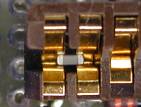 接続端子は、被測定キャパシタを簡単に接続できて、なおかつ浮遊容量が安定するよう工夫してみましょう。私はバーンイン用ICソケットを半分に切ったものを使ってみました。これなら大抵は足を広げたりせずにワンタッチでセットできるし、写真のようにソケット端部の隔壁がない(IC挿抜時の足曲がり防止?)ので、混ざったチップコン(1608〜3216)も測れて重宝します。この辺の造りは測定精度に影響してくるので、できるなら基板外に引き出すことは避けるべきです。基本的にホット側に付く浮遊容量を減らす(または安定させる)のが精密測定のコツです。VCやTCには極性がありますので、セオリー通りステータをホット側(+)に接続しましょう。ケースは金属製を使うか、トップの写真に示すように下面だけでもシールドしておくと良いです。