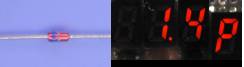 被測定キャパシタは 2.5Vまで充電されるので、それ以上の耐圧は必要です。ほとんどは問題ないでしょうけど。また、100pF未満では最小桁が0.1pFになり、リードの長さの違いなどちょっとした浮遊容量でも目立つ誤差になるので注意が必要です。