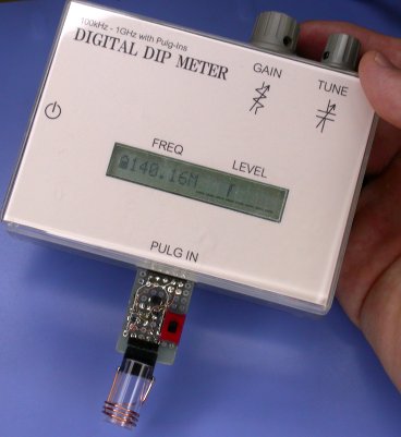 The most significant feature of the dip meter designed in this project is that the oscillator is divided out to the some plug-in modules like plug-in coils. Typical dip meter have an only oscillator circuit (amplifier and variable capacitor) in it and freqency band is selected by plug-in coils. In this case, there is an unsuitability of the circuit parameters around upper and lower frequency limit so that the frequency ratio is limited to several hundreds maximum. This problem can be solved by placing the oscillator circuit with plug-in coils and each plug-in module will able to work at ideal condition. This architecture had been adopted by old dip meters such as DELICA SP-3 and Measurements model 59.
