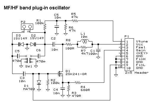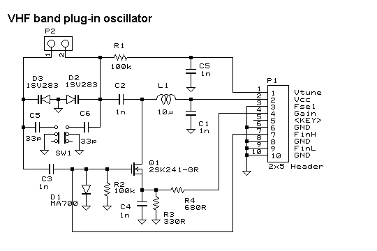 MF/HF band oscillator can insert capacitors parallel to the varactor diode to expand the covered range for lower. In UHF band, it is difficult to replace the coils so that the UHF band must be covered with some plug-in oscillators.