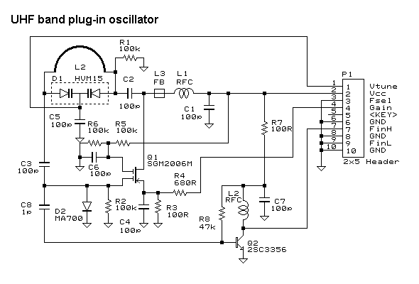 Oscillation frequency ranges became as shown in Table 1. The maximum oscillation frequency has been reached 1 GHz but there are some dead bands left. Especially it is hard to cover a wide range in UHF band due to some reasones: the capacitance ratio of UHF varactor diodes are small, parasitic capacitance also reduces the frequency ratio and coils cannot be replaced.