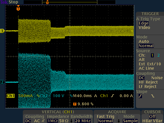 スイッチングコントローラには、周波数の任意制御を可能とするためマイコンを使ってみました。始動シーケンスは、予熱(65kHz/1.5秒)→スタート(52kHz/0.5秒)→通常動作(44kHz)としました。固定周波数で駆動するなら、IR2153などのオシレータ内蔵のハーフブリッジドライバが手軽です。