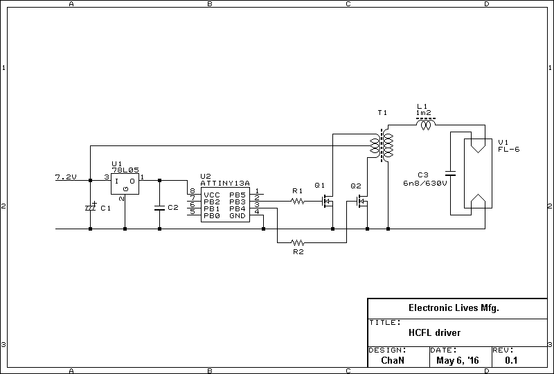 ところが、最近になってweb上で電池式蛍光灯の製作記事を見かけました。いまどき蛍光灯なんて...とは思ったものの、それがまさに当時そのままの回路だったので、あのときのモヤモヤ感が再燃。ということで、約30年ぶりに現代的な回路方式と理論に基づいて再設計してみました。