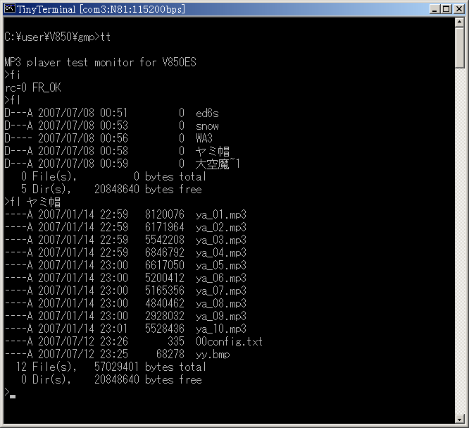 The FAT file system used in this project does not support long file name, however it can access the files with alternative short file name (8.3 format). The files can be sorted correctly even if named in long file name by numbering the files in heading two numeric characters. When a playlist (.m3u file) exists in the directory, the listing order follows the play list but in this case, the file names listed in the play list must be short name.