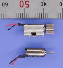動力源は、2個の振動モータで、モータのシャフトを板バネでタイヤに押しつけて動力を動輪に伝えます。