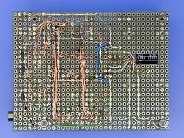 右上のIMGにメイン基板の写真を示します。何分、ポケットサイズに作る必要から、使用した LSIはすべて QFP品を使用しています。さらに、それらを基板にマウントするために変換基板さえ使えないので、ユニバーサル基板上に ICを直接マウントします。