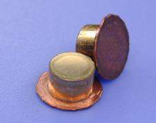 左の IMGは、自作したボタンです。φ5.0の真鍮丸棒を適当な長さに切り、抜け落ちないように片方に薄板を貼り付けています。角棒で作ったり、キートップに彫刻を入れたりと体裁に凝ってみるのも良いでしょう。