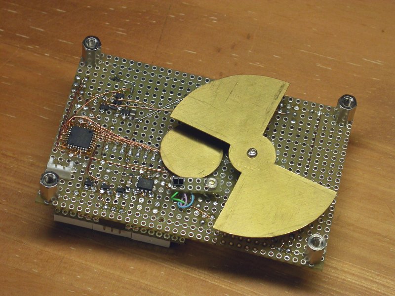 There are some mechanisms being used to chop the electric field. Real implementations tend to use a tuning fork type chopper. In this project, a simple rotary shutter, rotating disc with apertures, is used. The grounded shutter disk is driven by a CD spindle motor at 500-1000 RPM and the aperture timing is detected with a photo reflective sensor.
