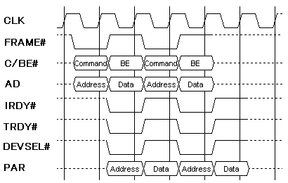 PCIバスがバースト転送で最も性能が出るように設計されていることは、アドレスとデータが時分割であることからも容易に想像できます。なぜなら、バースト転送においてアドレスは最初に1回指定するだけで十分だからです。これにより信号線数を大幅に抑えて動作の安定とコストの低減を図っているのです。