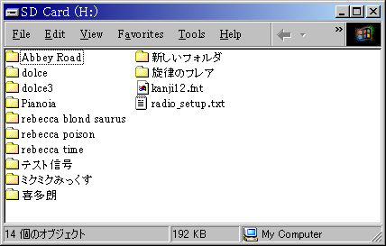 本機は128x64ドットの OLEDディスプレイを持っているので、日本語表示も可能です。しかし、日本語フォントはデータ・サイズが大きくマイコンのフラッシュ・メモリに入らないため、ファイル(12ドット FONTX形式)としてメモリ・カード上に置いておきます。これなら事実上無制限にフォントを格納できることになります。もしも何らかの原因でフォントを読み出せないときは、全角文字が豆腐になるだけで動作には支障が無いようにしています。なお、ディスプレイ基板が無くてもその他の機能の動作には影響ありません。