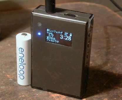 さて、これで設計方針は大体固まりました。まず、リムーバブル・メディアとして最も小型のmicroSDカードを使用します。対応する音声データの形式は、非圧縮リニアPCM、いわゆる普通の WAVファイルとします。一枚のカードに記録できるトラック数が増えると、アルバム名・曲名の表示が欲しくなってきます。これには最近入手しやすくなってきた有機EL(OLED)ディスプレイを使用します。最近話題になったのがワンチップFMラジオICで、これも加えてみます。電源にはLiPo電池を組み込んで使用します。