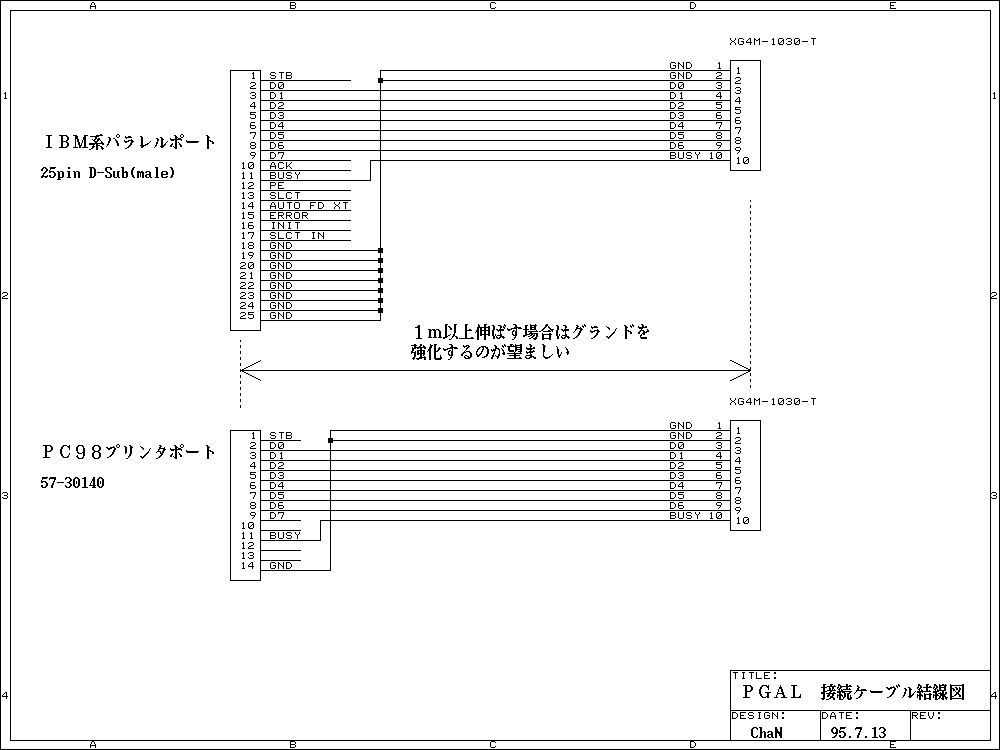 もしも動作が安定しない場合(違うピンが変化してしまうなど)は、グランドバウンスによるものと思われます。本器ではBUSYラインの駆動出力にCRをかましてグランドバウンスの低減を図っていますが、パラレルポートに接続するケーブルによっては誤動作する場合があります。補助的に10cm程度の線で本器の GNDとパラレルポートコネクタの金属部をつないでみて安定するようならそれが原因です。ケーブルを交換するかCRのRを100Ω程度まで変えてみてください。