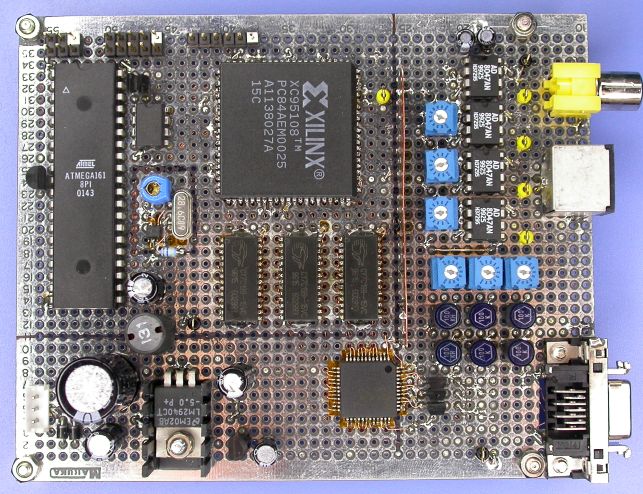 DAC: MB40988 (富士通) MCU: ATmega161 (ATMEL) PLD: XC95108 (Xilinx) |